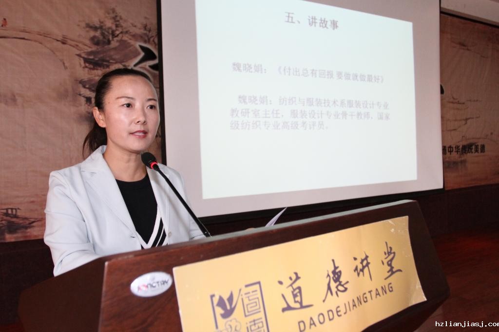 活动由自我反省、唱歌曲、学模范、诵经典、讲故事、谈感悟、送吉祥7个环节组成。“吾日三省吾身——为人谋而不忠乎?与朋友交而不信乎?传不习乎?”全体师生共同感悟曾子的教诲,反省自己的学习、工作和生活,聆听了一曲《好人就在身边》、观看了大学教授李保国的感人事迹后,每个人的心灵都被深深震撼和感动着,在宣讲员蔡旭明老师的领颂下,一首毛主席的《清平乐·六盘山》如时空隧道,大家仿佛站在六盘山之巅分享着长征胜利的喜悦,蔡老师对习近平总书记到宁夏视察时提出宁夏要大力弘扬“不到长城非好汉”的精神,走好新的长征路的要求进行了深刻阐述。师生们深刻领悟到“不到长城非好汉”的宁夏精神,是宁夏丰厚文化底蕴、光荣历史传统的高度凝练,是宁夏人文特质、区域特质和时代特质的高度浓缩,是源于历史、基于现实、引领未来的核心理念。在讲故事环节,同学们分享了“身边的好人”——纺织与服装技术系的魏晓娟老师的精彩故事,她在平凡的岗位上树立了不平凡的形象,2015级杨思雨同学、2016级服装设计班施文同学分别畅谈了自己的感悟,令在场的同学们深受启迪,纷纷反省自我道德修养,承诺珍惜当下美好生活,做一个有道德的人,大家坚信“付出总有回报,要做就做最好!”最后,道德讲堂在送吉祥环节中圆满结束。