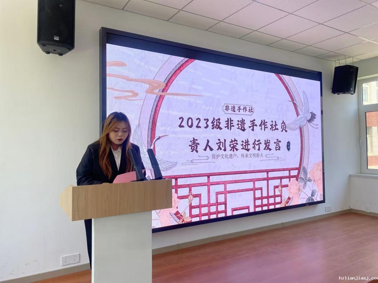非遗手作社的新任社长何荣荣,详细地介绍了社团未来一年的活动计划,这些计划包括即将启动的手工艺工作坊、非遗文化展览等活动。她承诺,将会带领社团继续努力,致力于将非遗文化发扬光大,让其在校园内外绽放出新的光彩。