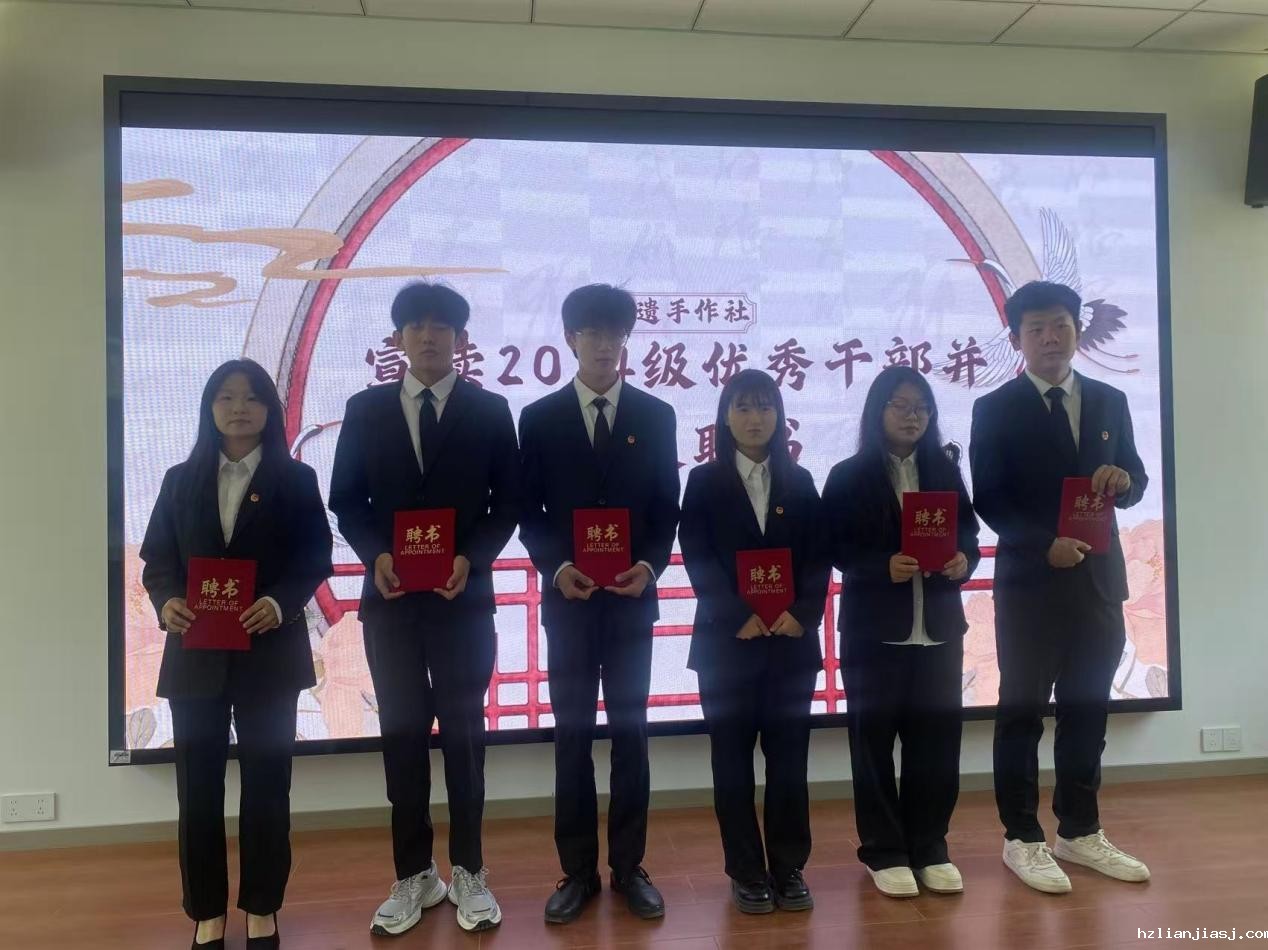 过去一年非遗手作社以自己的实际行动,为学校和社团的发展贡献了青春力量。换届大会为杰出的干部颁发了聘书,以表彰他们在过去一段时间内的卓越贡献和不懈努力。聘书的颁发不仅是对他们工作的肯定,也是对他们未来发展的美好祝愿。