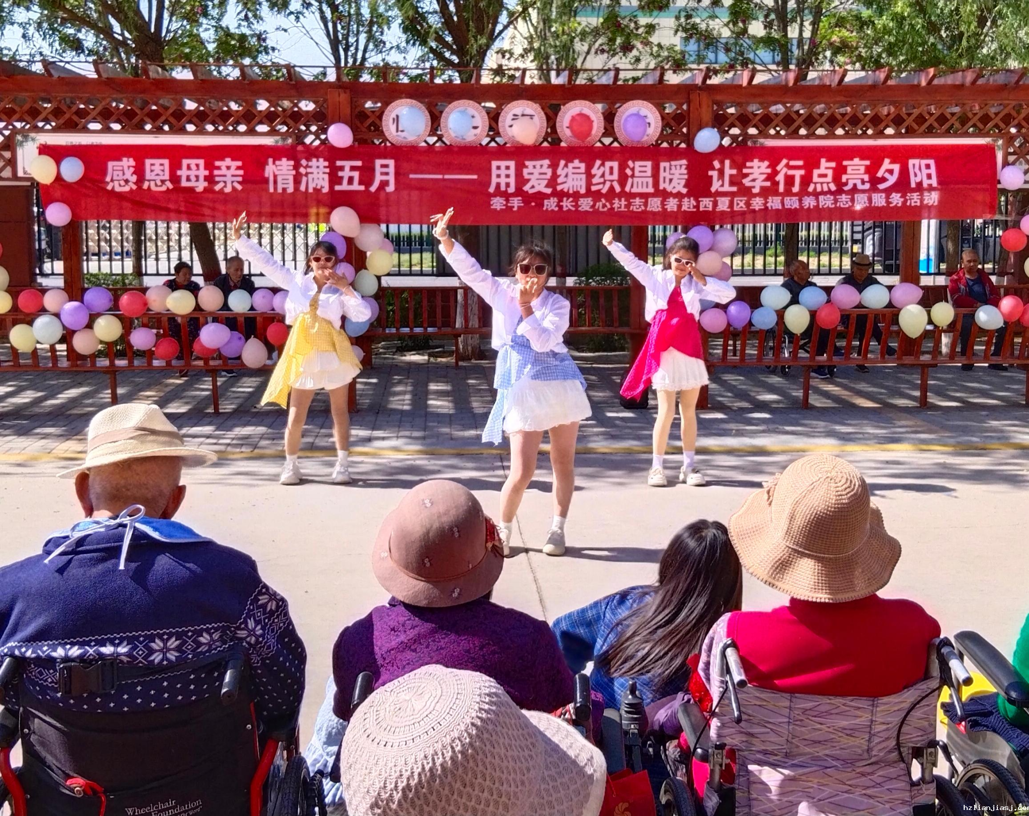 2025年5月11日,正值母亲节之际,牵手·成长爱心社联合大学生艺术团话剧部,组织40余名志愿者,赴西夏区幸福颐养院,以“感恩母亲,情满五月——用爱编织温暖,让孝行点亮夕阳”为主题,为院内老人献上了一场充满温情与活力的志愿服务活动。
