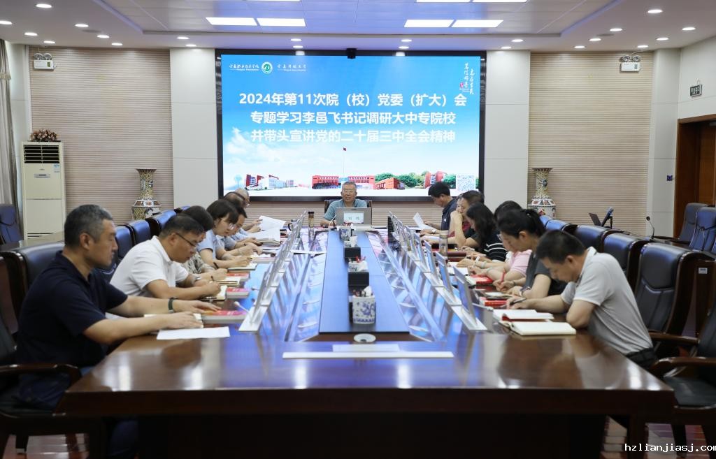8 月 1 日上午,学校党委书记刘炜主持召开2024年第11次党委(扩大)会会议,专题深入传达学习党的二十届三中全会精神和自治区党委书记李邑飞同志调研大中专院校并带头宣讲党的二十届三中全会精神,研究贯彻落实意见。
