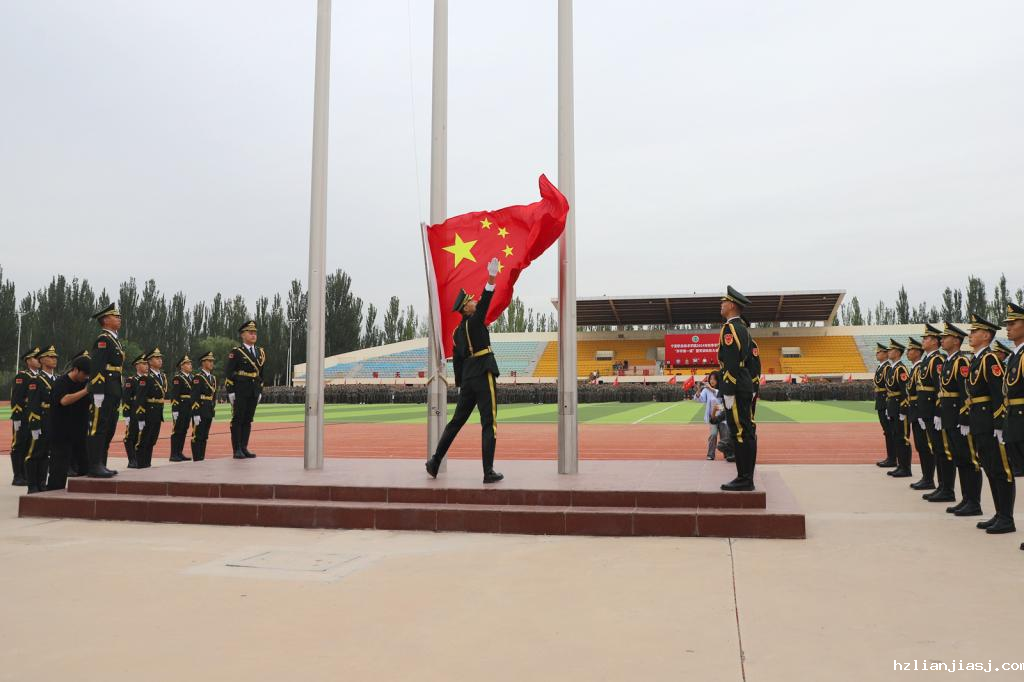 10点整,学校在竞健苑举行新学期升国旗仪式,开启新生入学“开学第一课”,随着嘹亮的号令响起,升国旗仪式正式开始。国旗护卫队队员以挺拔俊逸的身姿、坚定矫健的步伐和铿锵有力的口号,护送国旗入场。“升国旗,奏唱国歌,敬礼!”伴随着雄壮的《义勇军进行曲》,鲜艳的五星红旗冉冉升起,全体人员携着憧憬与希望,肃立齐唱国歌,行注目礼。旗帜飘扬引领方向,国歌唱响催人奋进。庄严的升国旗仪式感染着每一名师生,爱国之情和强国之志在心中油然而生。
