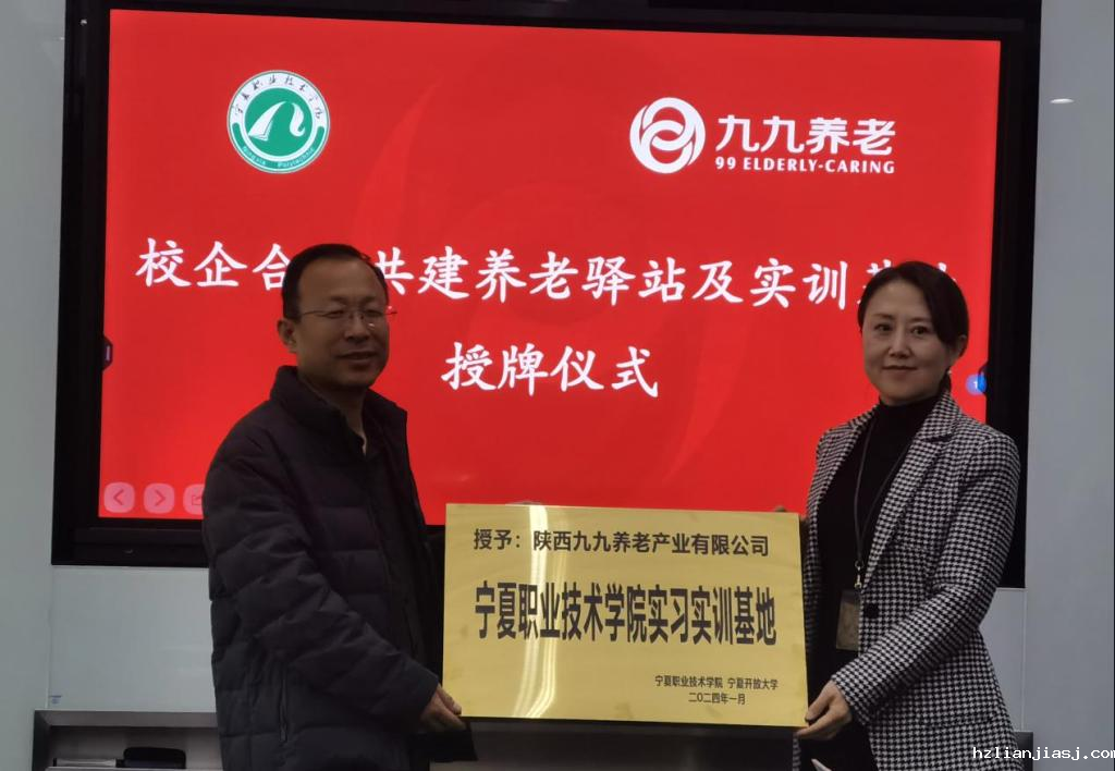 图7 我校与陕西九九养老产业有限公司共建实训实习基地授牌