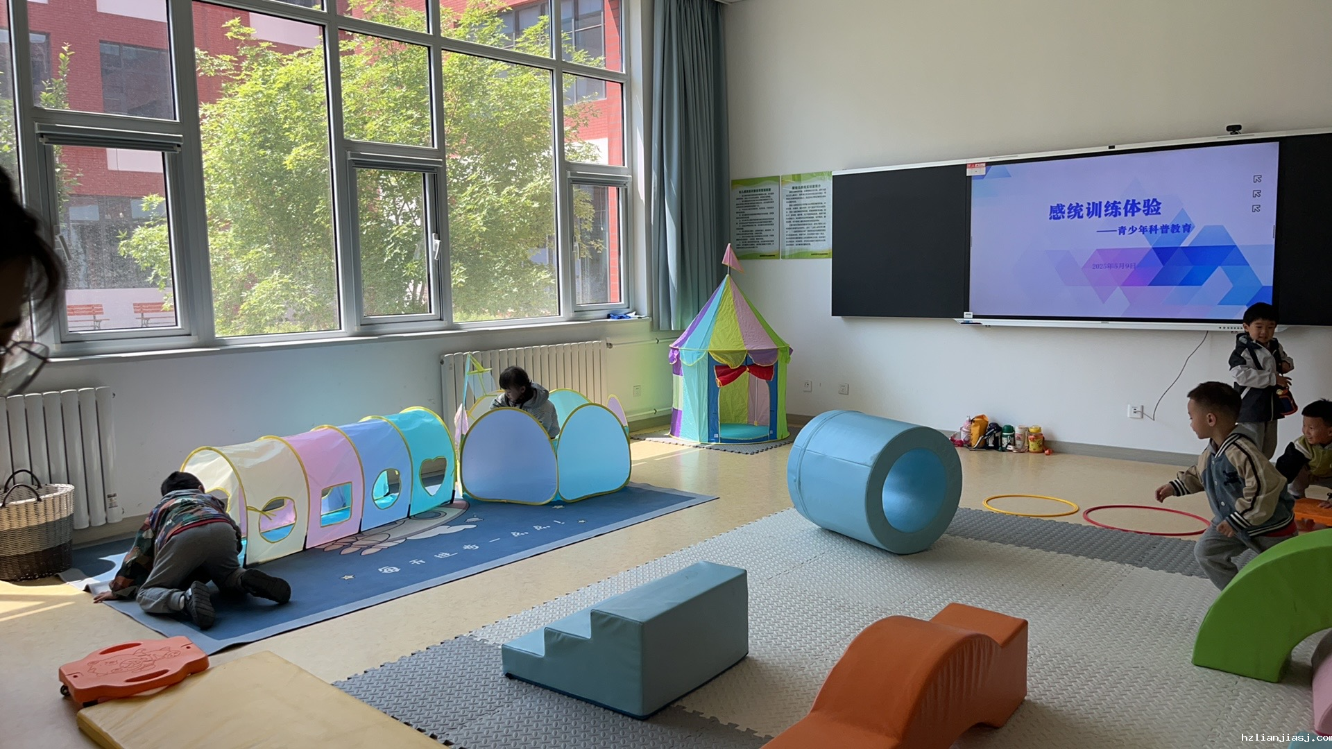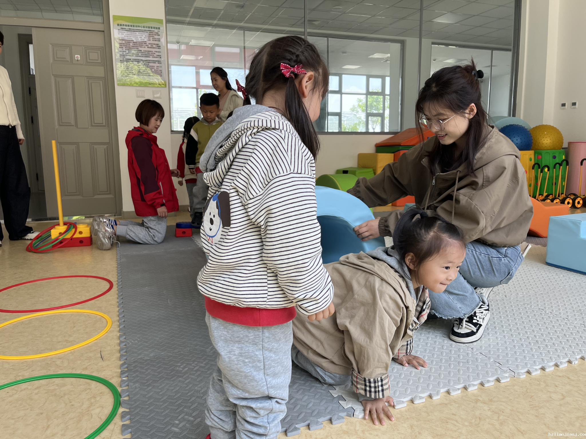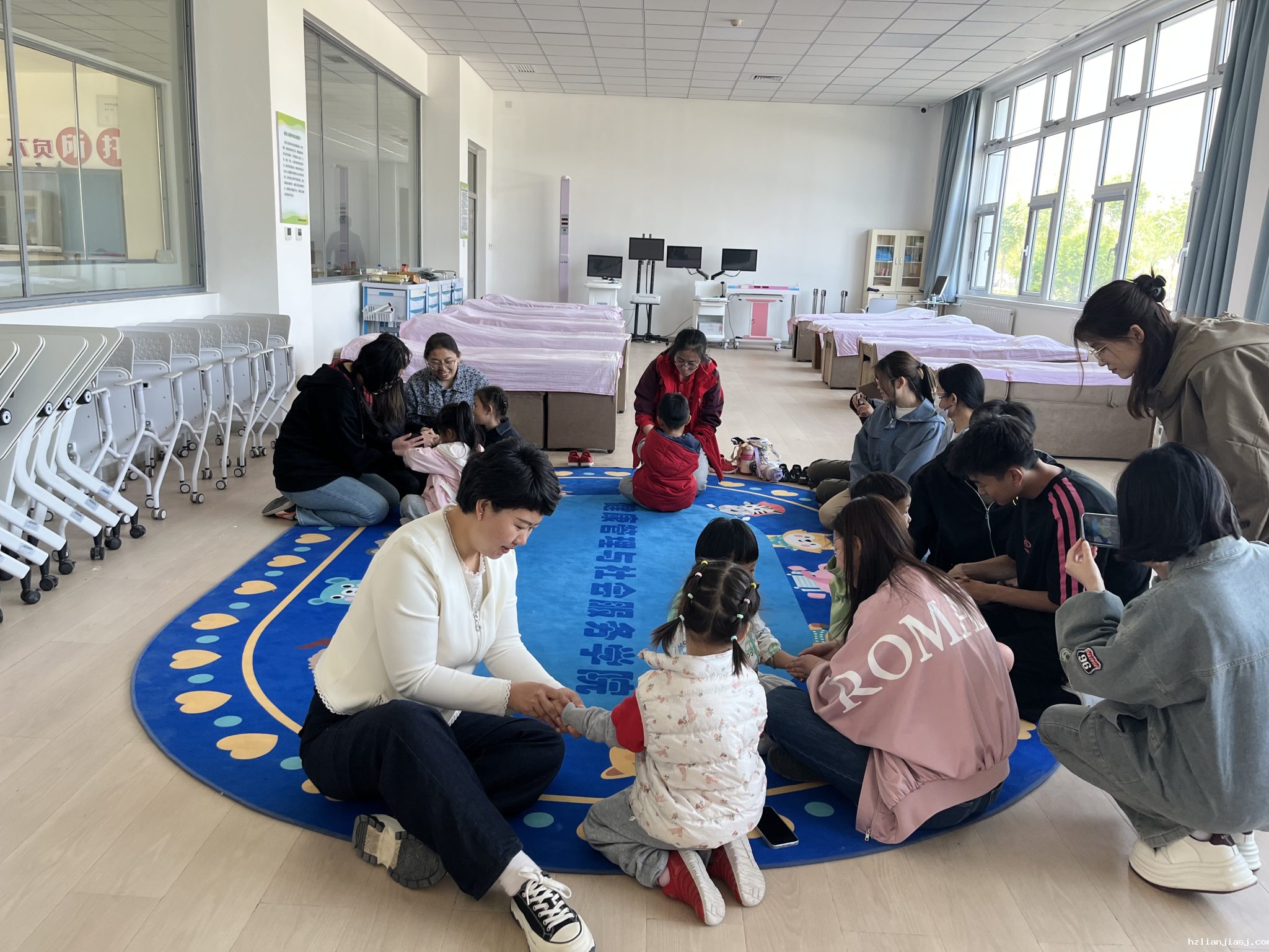 在中医推拿体验区,学院托育专业的教师以生动易懂的语言向孩子们讲解“小手掌大健康”的奥秘,孩子们化身“小小中医师”,用稚嫩的小手互相体验推拿手法;沙盘体验区则成为孩子们表达情绪的“心灵花园”,孩子们通过引导后,按自己的方式摆放沙具、塑造沙景,专业教师则在一旁观察其心理状态与社交行为;感统训练区,托育专业的师生结合中医“身心合一”理念,设计了一系列趣味游戏,让孩子们在专业设备上挑战平衡木、跳床和触觉隧道,帮助幼儿提升肢体协调性与专注力。