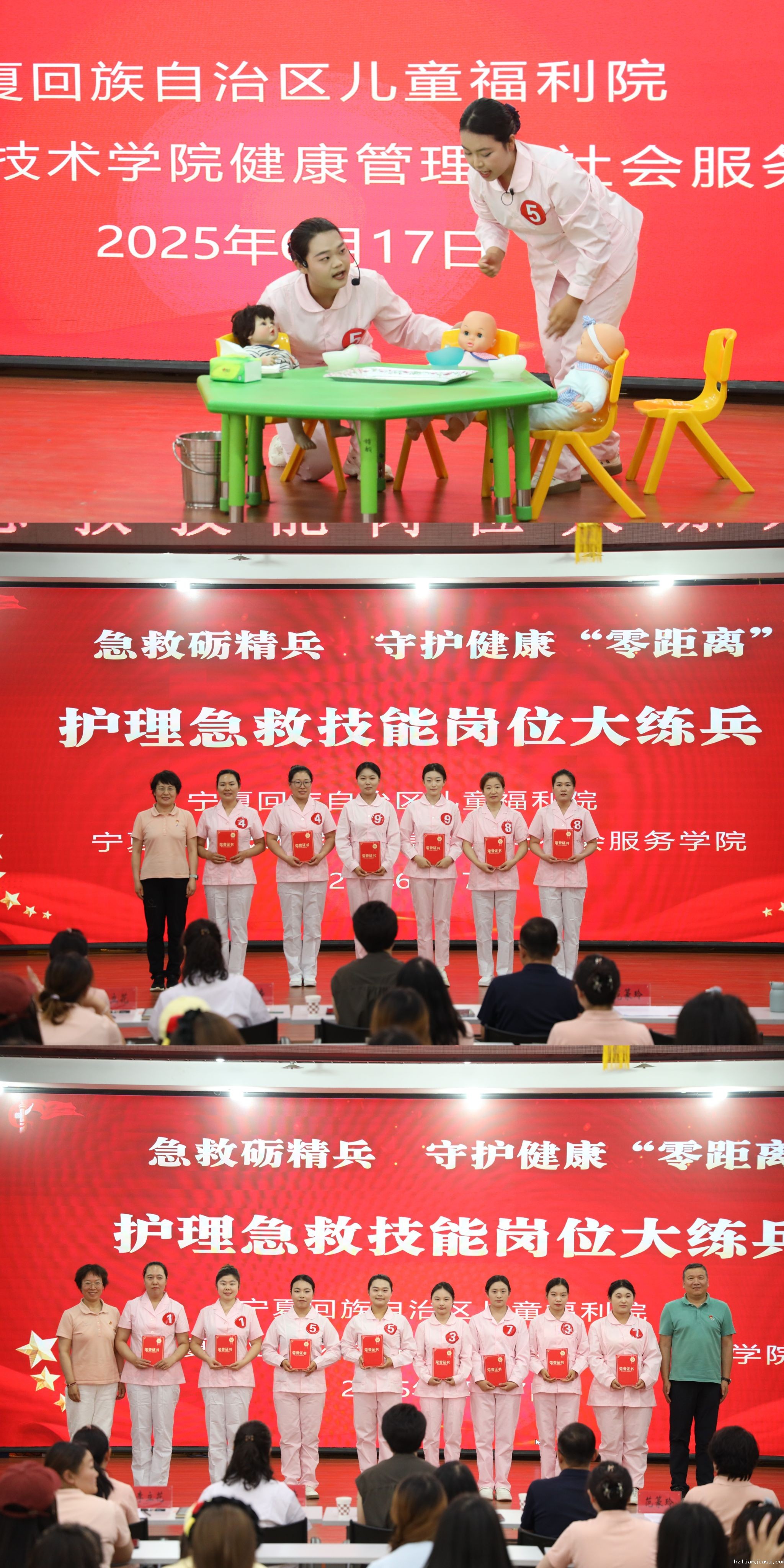 为深化产教融合、院校协同育人,提升儿童护理应急能力,6月17日下午,我院与宁夏儿童福利院在福利院多功能厅联合举办了“急救砺精兵,守护孤残‘零距零’”儿童护理急救技术岗位练兵活动。2024级婴幼儿托育服务与管理专业全体同学参与。活动旨在充分发挥学院教学资源优势与宁夏儿童福利院“官清梅技能大师工作室”实践平台作用,共同探索高素质幼儿照护人才培养新模式。