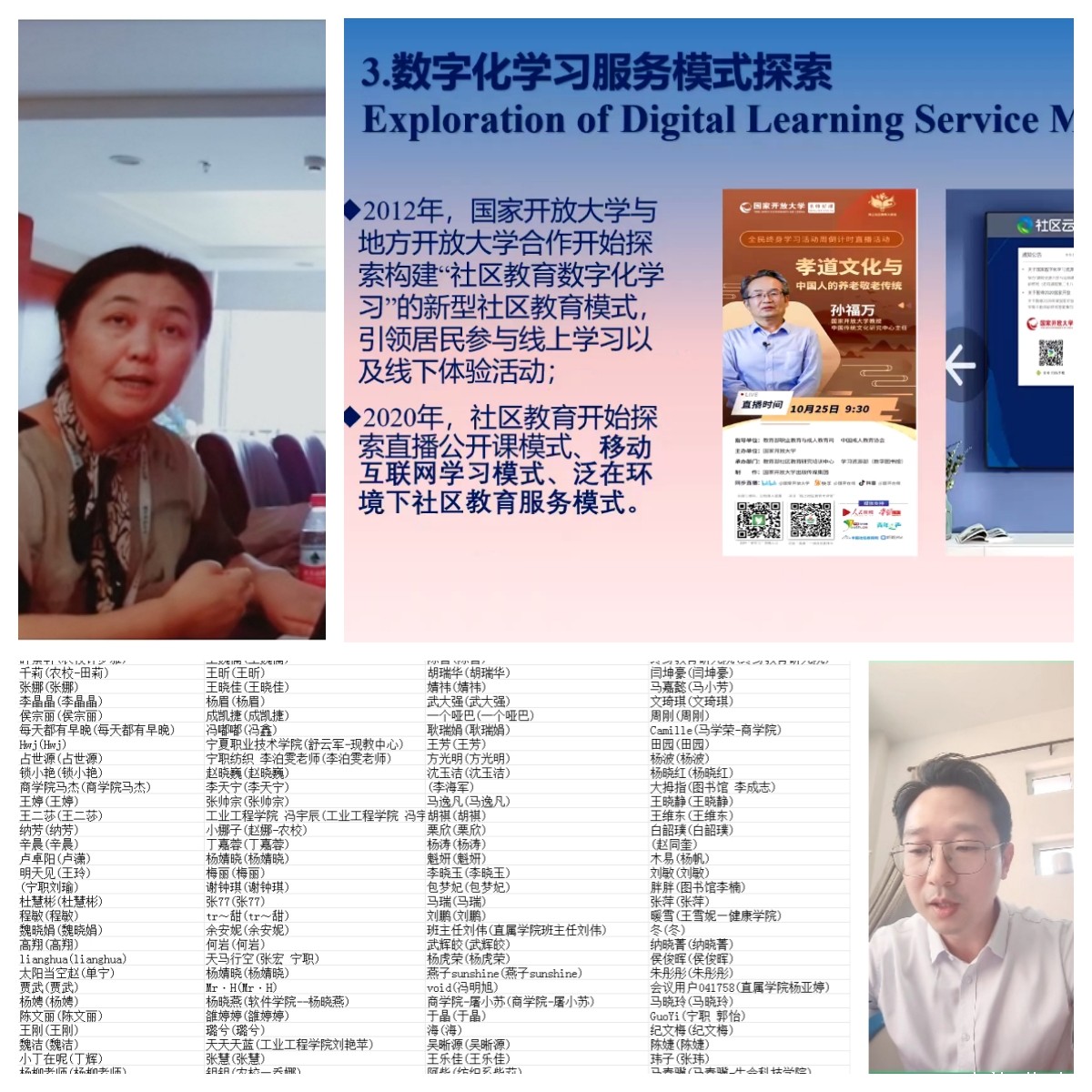 培训会上杜若院长详实地分享了终身教育的背景、实践路径以及开放大学存在的问题。此外,她还关注了开放教育成本效益研究等问题,最后她以视频播放的形式介绍了国家开放大学打造终身教育平台的路径。
