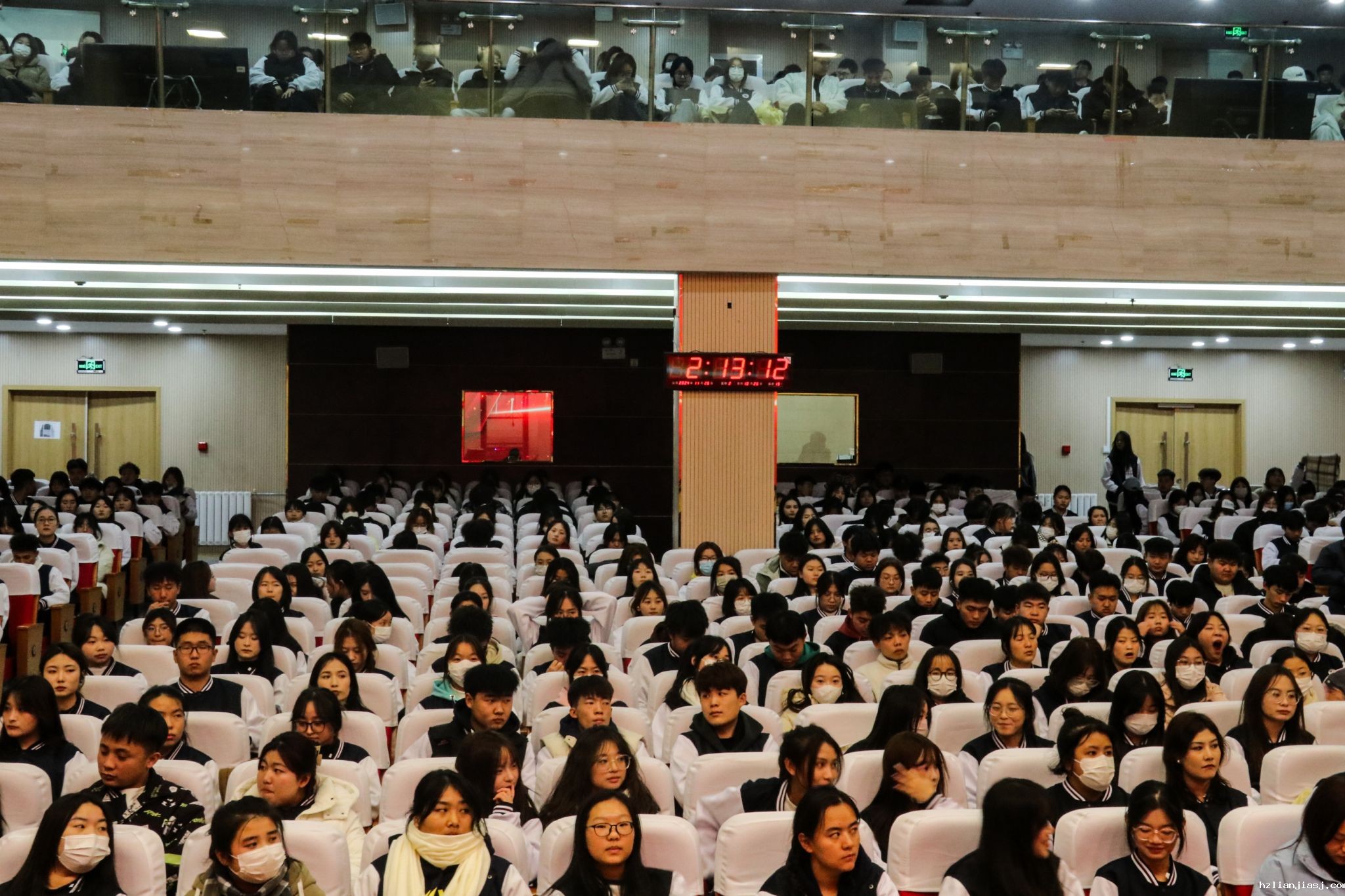 为充分发挥榜样示范引领作用,激励全体学生顽强拼搏、刻苦努力、奋勇争先向身边榜样看齐、向优秀典型学习,弘扬知学、好学、乐学优良学风,促进学生全面发展,11月26日下午我院在图书馆报告厅举行 2024-2025学年第一学期学生表彰暨安全教育大会。学院党总支书记韩海燕、院长李勇、副书记郭亮、副院长陈西风、崔海及全体辅导员、在校学生共计800 余人参加。大会由学院党总支副书记郭亮主持。