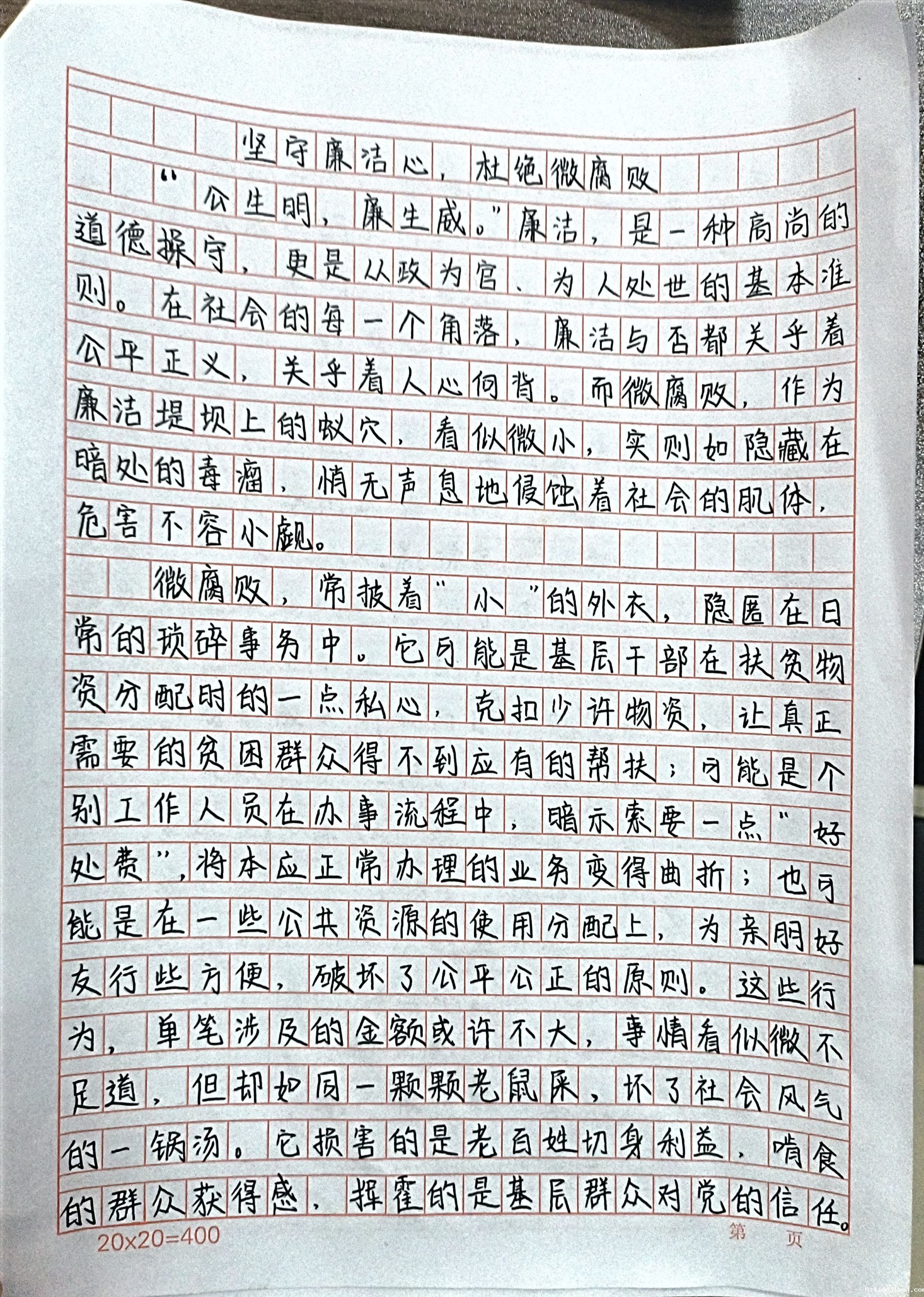 笔尖书清风,真情抒清廉。一篇篇廉洁主题的美文,一句句引人深思的警句,时刻告诫我们“在面对诱惑时坚守底线,在日常行为中践行廉洁”。