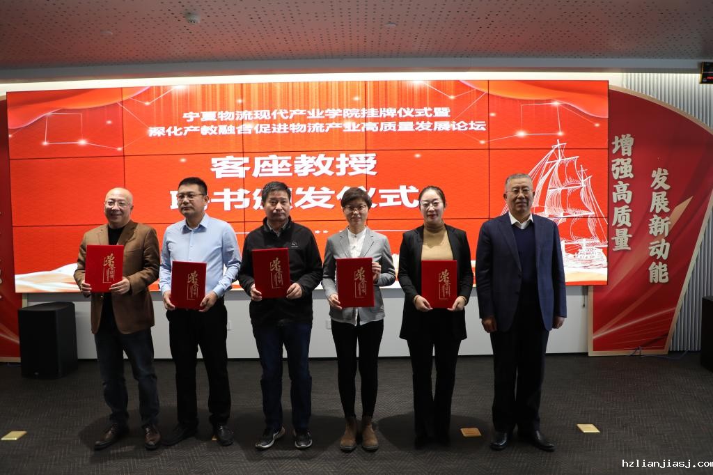 会上,学校党委书记刘炜为银川综合保税区管委会副主任吕文亮、宁夏新华百货现代物流有限公司总经理赵军龙、宁夏新华物流股份有限公司董事长闫兴华、宁夏新华百货物流有限公司总监张萍、宁夏杞里香枸杞有限责任公司副总经理陈晓莉颁发“客座教授”聘书。学校党委副书记张桓代表学校向银川商贸服务型国家物流枢纽、银川综合保税区、新道科技股份有限公司、宁夏金桥物流有限公司四家企业授予“韦德1946手机校外实习实训基地”牌匾。