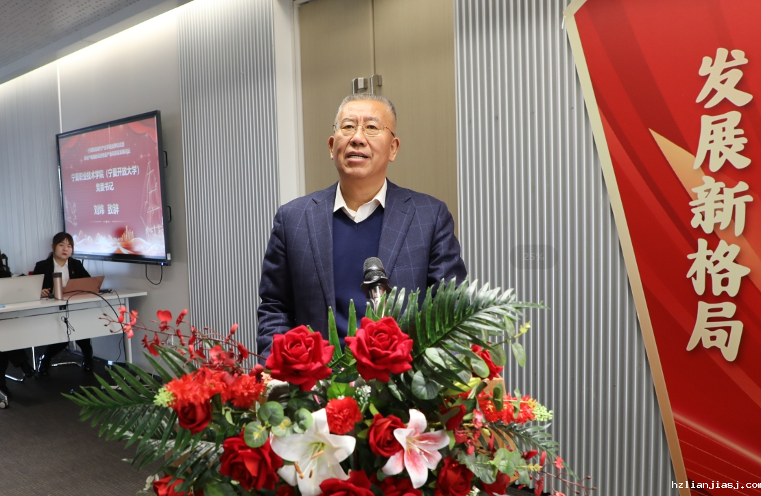刘炜在致辞中指出,“宁夏物流现代产业学院”的成立,既是贯彻落实教育部《关于深化现代职业教育体系建设改革的意见》的具体举措,也是贯彻落实自治区教育厅等四部门印发《自治区现代产业学院建设指南》要求的生动实践。希望以此次挂牌仪式为契机,积极发挥学校的办学优势,遵循高起点规划、高标准建设、高质量推进的原则,与企业一道开启携手奋进的新篇章、共谋校企合作的新蓝图。他从三个方面对产业学院的建设作了具体要求:一是乘势而上在“新”上做文章。要以物流现代产业学院为平台,深入探索实体化产业学院运行机制,大力推进产教深度融合,全力促进教育链、人才链与产业链、创新链有机衔接,持续为自治区物流行业企业的高质量发展增添新动能,以敢拼敢干的闯劲开创新气象。二是久久为功在“深”上谋特色。要聚焦物流产业核心领域,实现师资力量、技术设备、场地设施等各类资源的全面共享,切实把物流产业优势做足、特色做亮、品牌做强,通过解决人才供给不足与产业人才需求之间的矛盾,让人才供给侧与需求侧的有机衔接更为紧密,从而真正实现人才培养的全要素、全过程、全方位的深度协作。三是踔厉奋发在“实”上下功夫。要依托各自资源优势,完善合作机制,拓展合作领域,在人才培养、伟德买球app下载、技术创新、企业服务、学生创业、教育与产业融合等方面采取切实有效的举措,打造形成面向物流行业的综合实习实训基地、人才培养认证基地,促动生态伙伴跨界连接,共生共好,共同创造物流产业发展和人才培养更大价值空间。