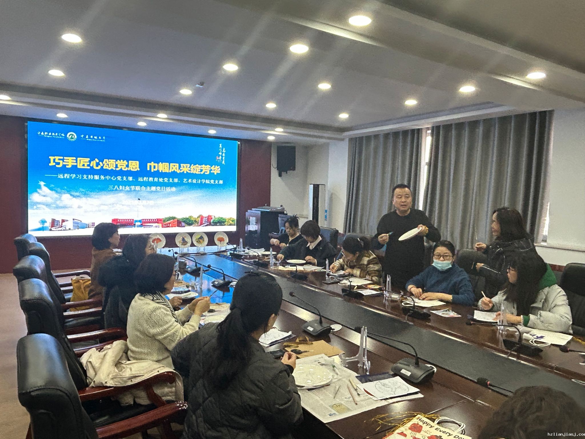 3月7日下午,远程学习支持服务中心党支部联合远程教育处党支部、艺术设计学院党支部三八妇女节联合主题党日活动在金凤校区二楼会议室举办。在艺术设计学院教工党支部的大力支持下,活动邀请“掐丝珐琅瓷盘画”非遗传承人王歌现场讲解并指导制作。本次活动共有25名教师齐聚一堂,在指尖技艺中感受非遗魅力,共度别样妇女节。