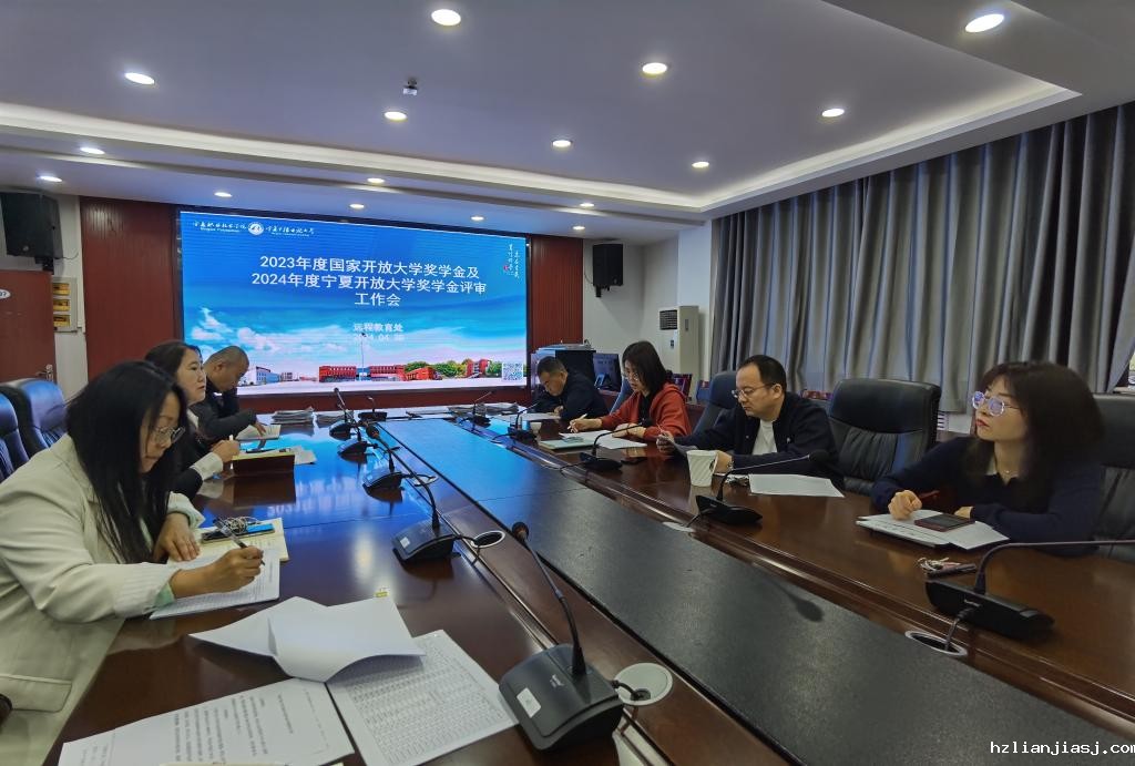 4月30日上午, 2023年度国家开放大学奖学金及2024年度宁夏开放大学奖学金评审工作会在金凤校区二楼会议室召开。远程教育处副处长罗建红、副处长樊宇、学习支持服务中心主任纳晓菁、计划财务处赵钊及远程教育处学籍科人员参加此次会议。会议由远程教育处副处长罗建红主持。