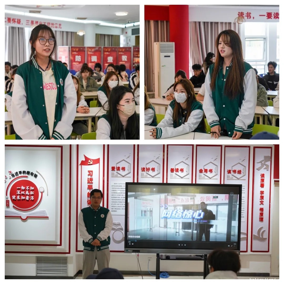 在国家安全教育日来临之际,为切实强化学生的国家安全意识,提升其维护国家安全的专业素养与实践能力,4月9日下午,宣传统战部联合艺术设计学院在红色经典书屋精心策划并组织了一场内容丰富、形式多样的安全教育活动,旨在通过沉浸式学习体验,将国家安全理念深植于学生心中。23 级广播影视节目制作 2 班与 24 级数字媒体艺术设计3+2班的全体学生参加了此次活动,活动由辅导员连泽睿、雍容华主持。