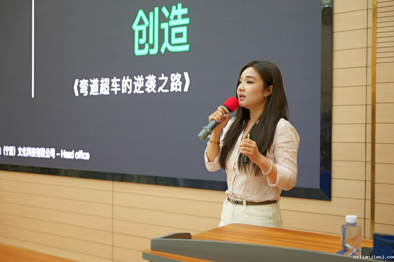 汪诗瑶以资深广告从业者的身份,为在场同学带来了一场干货满满的主题宣讲。她先以详实的行业数据切入,深入剖析广告文化发展的现状,从大数据驱动的精准营销成为行业标配,到消费者对广告内容情感共鸣需求的激增。随后,刘诗瑶将视角投向未来,结合元宇宙、AI智能创作等前沿技术,展望行业趋势方向。她的宣讲让同学们对广告文化行业的发展脉络与未来图景有了更清晰、更全面的认知。