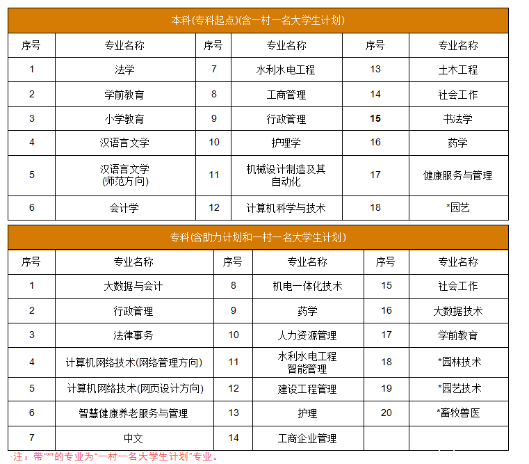 4.报读"一村一名大学生计划"为具有普通高中、职业高中、技工学校和中等专业学校毕业的农村青年。