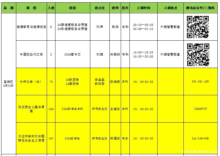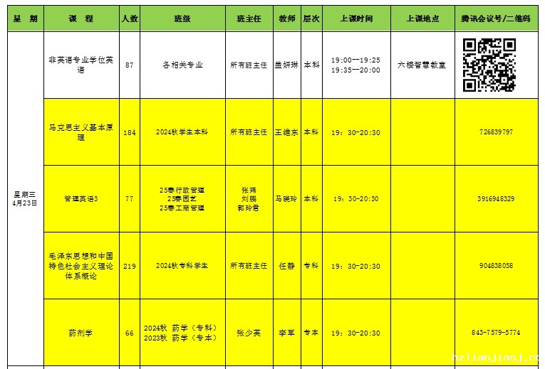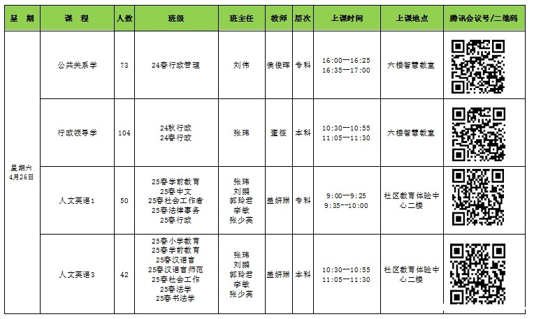 直属学院2025年春季学期第二周(4月21日—4月27日)课表