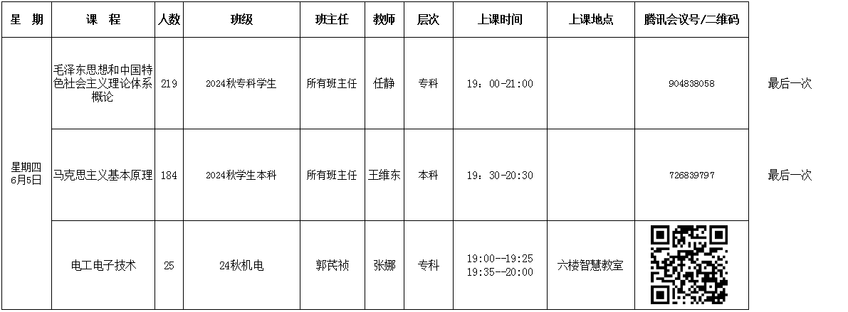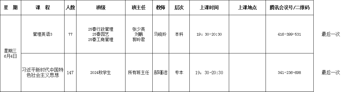 直属学院2025年春季学期第八周(6月2日—6月8日)课表